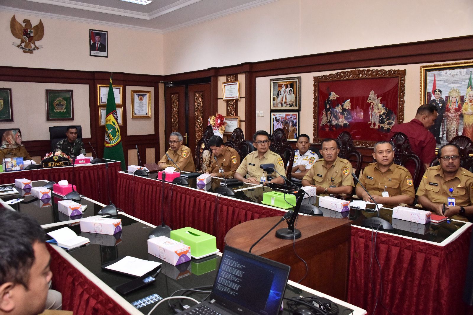 Turut mendampingi Bupati Etik Suryani dalam rakor tersebut adalah Dandim 0726/Sukoharjo Letkol Inf Supri Siswanto dan seluruh anggota Forkopimda Kabupaten Sukoharjo.