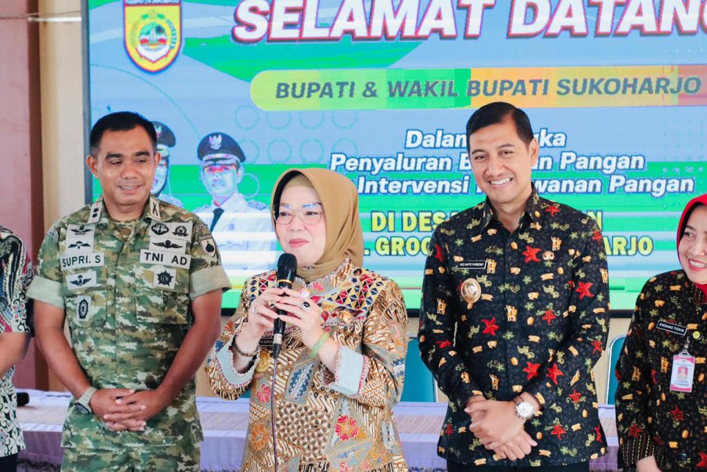 Sukoharjo – Bupati Sukoharjo Etik Suryani secara langsung menyerahkan bantuan pangan sebagai upaya intervensi kerawanan pangan di Kabupaten Sukoharjo, Jumat (31/10/2025). Penyerahan bantuan dilaksanakan di dua lokasi, yakni Balai Desa Kwarasan dan Balai Desa Pondok Grogol.