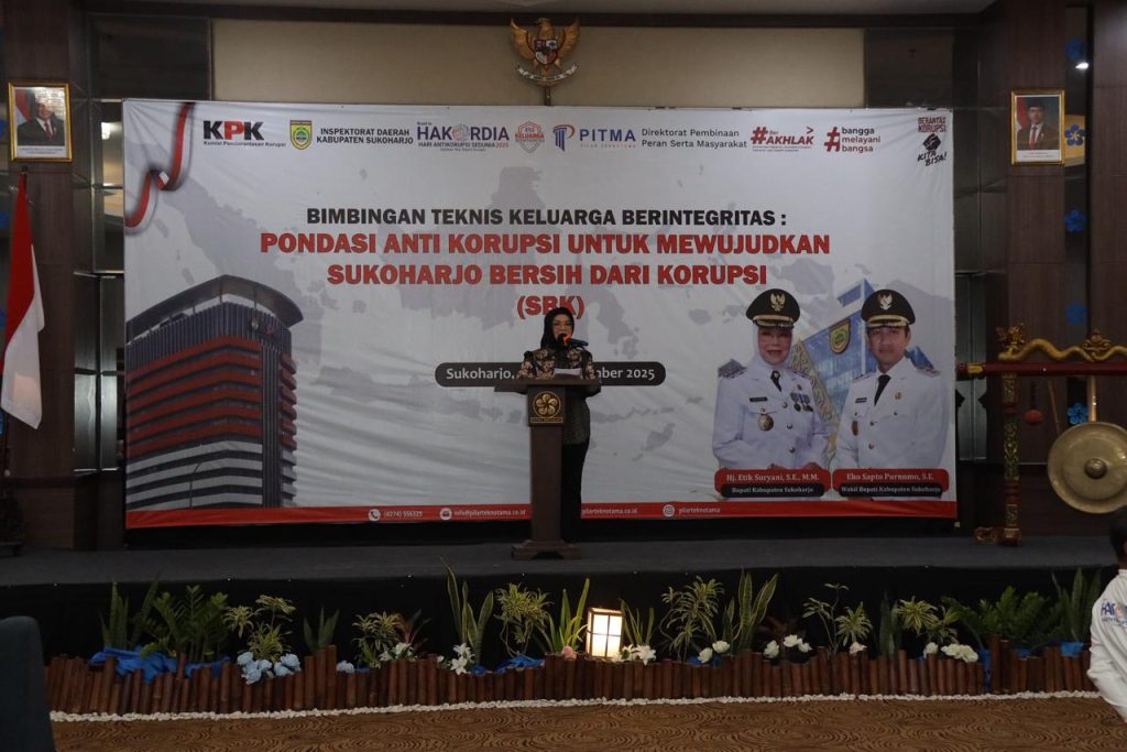SUKOHARJO — Pemerintah Kabupaten Sukoharjo terus memperkuat upaya pembentukan karakter dan etika masyarakat melalui penyelenggaraan Bimbingan Teknis (Bimtek) Keluarga Berintegritas Tahun 2025 yang digelar di Mayasabha Ballroom Hotel Brothers Solobaru, pada Selasa (18/11/2025).