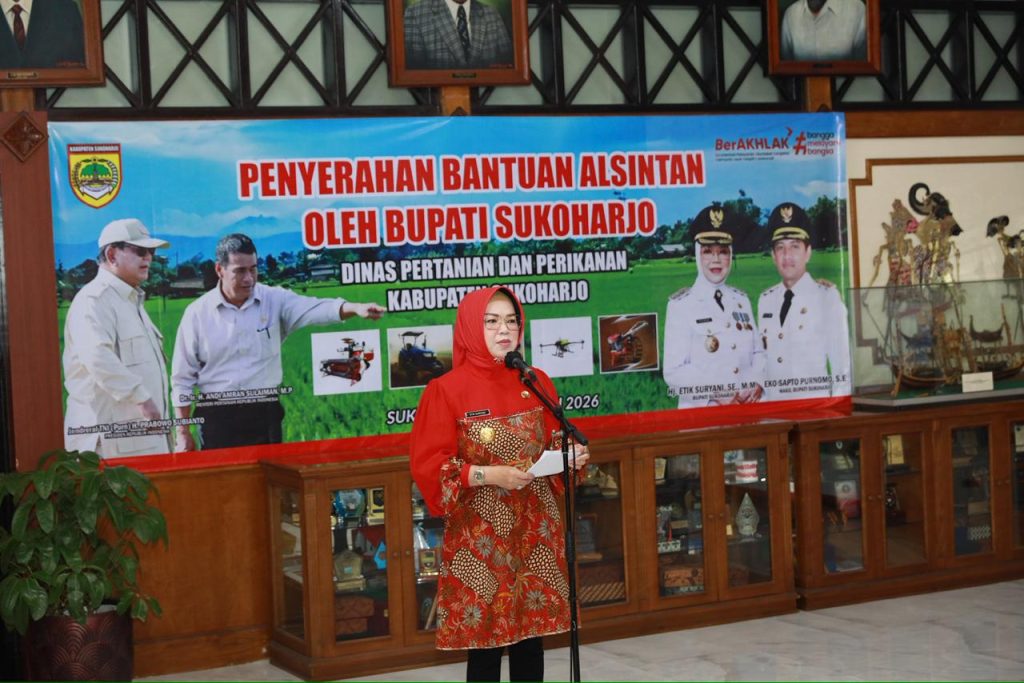 SUKOHARJO – Pemerintah Kabupaten Sukoharjo menerima bantuan alat dan mesin pertanian dari Kementerian Pertanian sebagai upaya mendukung program swasembada pangan nasional. Sebanyak 56 unit alsintan diserahkan kepada kelompok tani di 12 kecamatan, Kamis (22/1/2026).