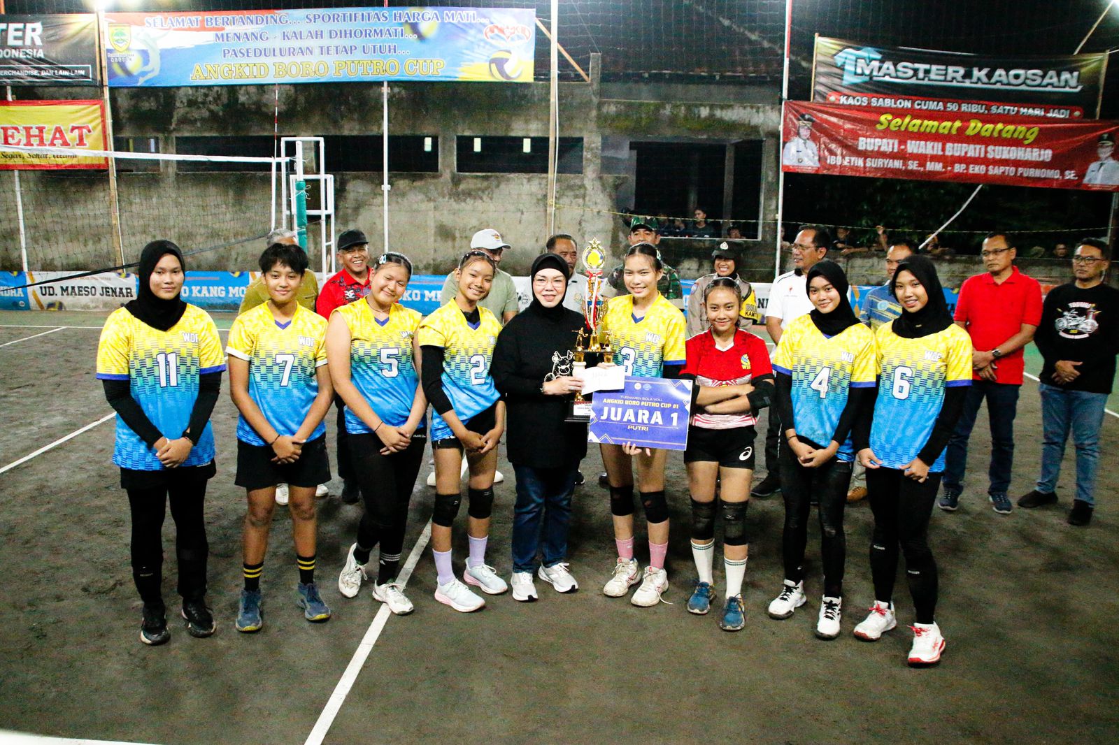 Baca SelanjutnyaSUKOHARJO – Bupati Sukoharjo, Hj. Etik Suryani, S.E., M.M., secara resmi menutup turnamen bola voli antar RW se Kelurahan Nguter, Kamis (15/1/2026) Kehadiran Bupati pada malam penutupan tersebut disambut antusias oleh warga dan para suporter yang memadati lokasi pertandingan. Turut hadir mendampingi Bupati dalam acara tersebut, Pimpinan DPRD Kabupaten Sukoharjo, Asisten Pemerintahan dan Kesejahteraan Rakyat Sekda, Kepala Perangkat Daerah terkait, Camat Nguter beserta jajaran Forkopimcam, Lurah/Kepala Desa se Kecamatan Nguter, serta pengurus Karang Taruna setempat. Dalam sambutannya, Bupati Etik Suryani memberikan apresiasi...
