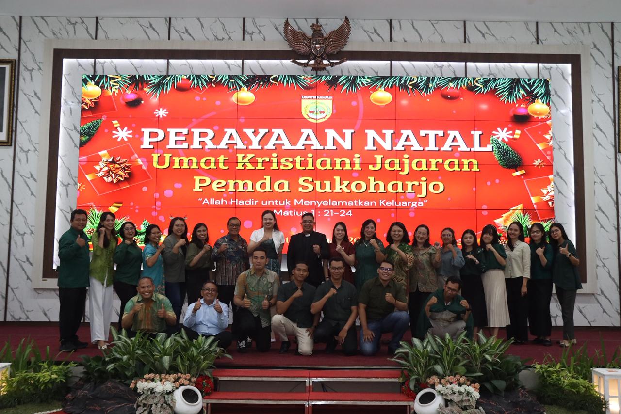 SUKOHARJO - Pemerintah Kabupaten (Pemkab) Sukoharjo menggelar perayaan Natal bersama karyawan dan karyawati di lingkungan pemerintahan. Acara ini menjadi momen perayaan keagamaan, juga mempererat tali persaudaraan antar umat, diselenggarakan di Menara Wijaya lantai 10, Jumat, 9 Januari 2026. Ketua Panitia Perayaan Natal, Retno Widiyanti Budiningsih, menyampaikan, kegiatan ini merupakan wujud kebersamaan, kekeluargaan, serta semangat toleransi yang terus dijaga di lingkungan Pemkab Sukoharjo. "Perayaan Natal ini tidak hanya menjadi momen ibadah dan perayaan iman, tetapi juga menjadi sarana untuk mempererat tali persaudaraan, memperkuat...