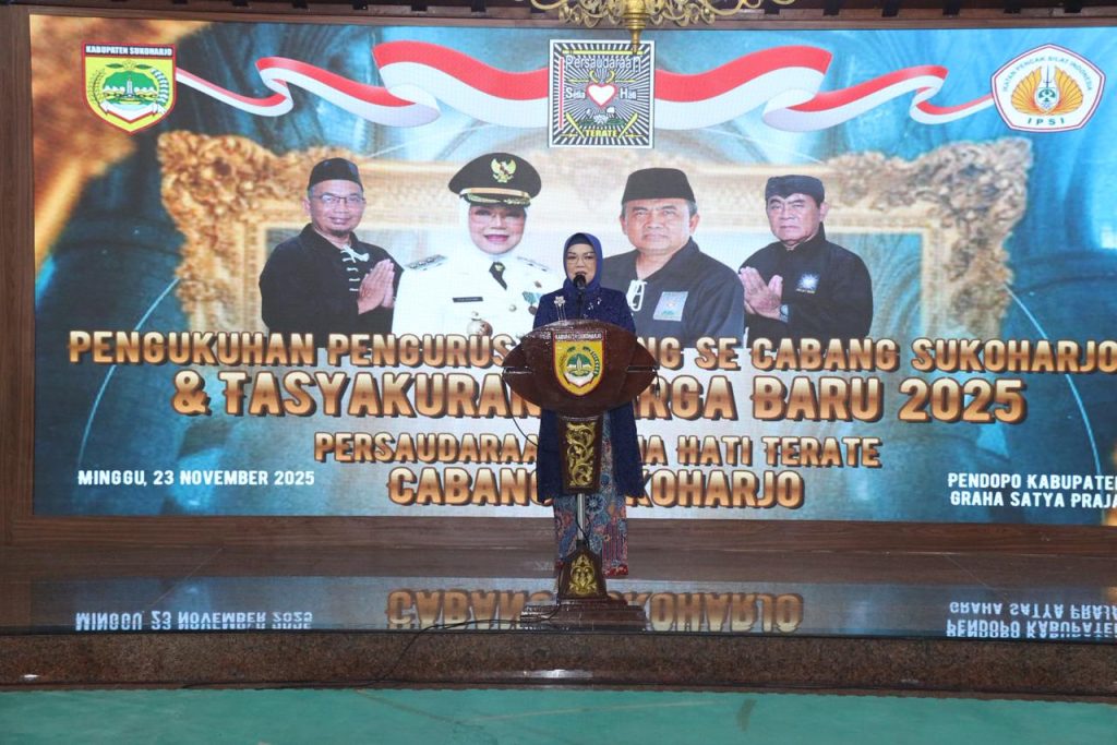 SUKOHARJO – Acara Tasyakuran Warga Baru sekaligus Pengukuhan Ketua Ranting se-Cabang Sukoharjo untuk periode 2025–2028 digelar di Pendopo Graha Satya Praja (GSP) Sukoharjo, Minggu (23/11/2025). Kegiatan berlangsung khidmat dan dihadiri jajaran pengurus cabang, tokoh masyarakat, serta perwakilan organisasi dari seluruh kecamatan.